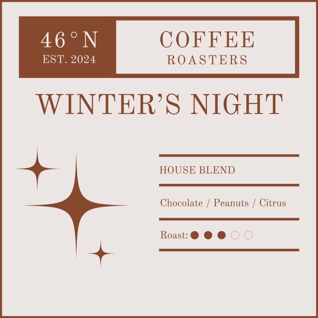 Winter’s Night is our signature blend — a thoughtful combination of Brazil’s smooth, nutty richness and Guatemala’s bright citrus and cocoa tones. Simple in approach, profound in flavor.